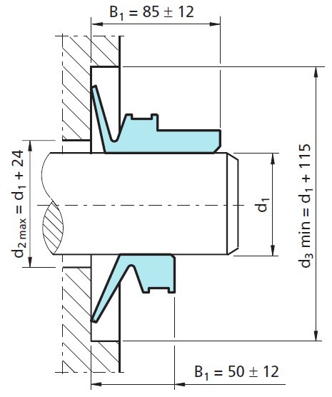 VRM形水封的尺寸經(jīng)??梢詮囊唤M直徑范圍內(nèi)選取,如軸的公稱直徑是處于兩組推薦值的邊界范圍外,則應(yīng)選用下一組較大的VRM形水封。