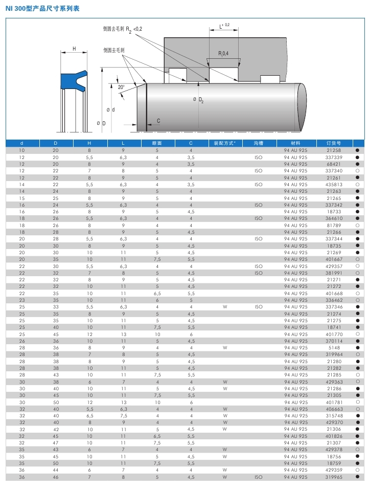 雙唇軸用U型圈NI300
