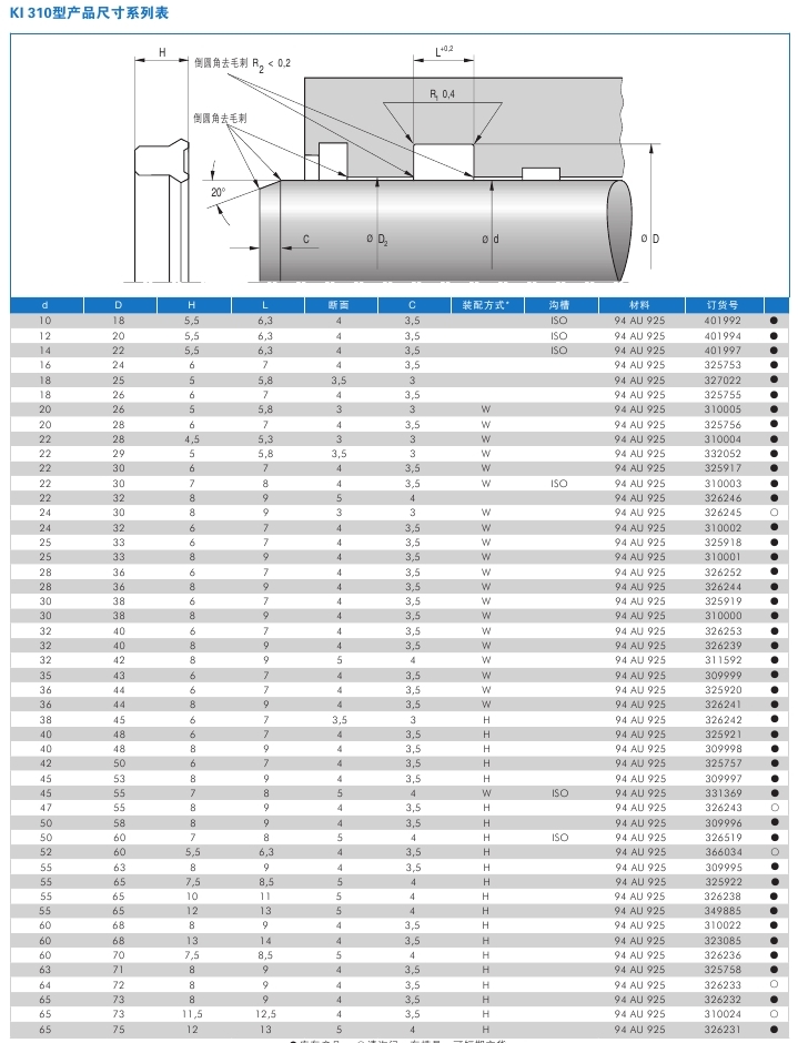 軸用壓緊型密封圈KI 310
