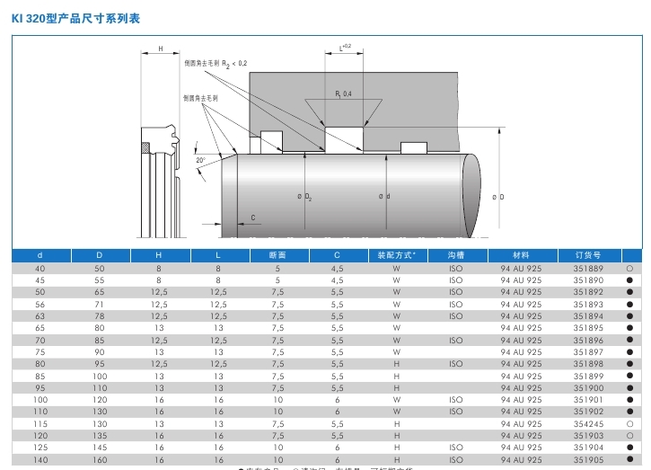 軸用壓緊型密封圈KI 320