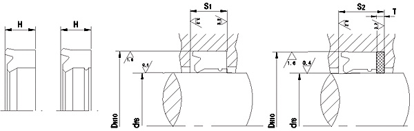 軸用Y型活塞桿密封有結構簡單、安裝方便、成本低、密封性能好等特點,用于活塞桿單向密封,而TSY油封是一種有兩道密封唇口且外徑處為緊配合地唇形密封(SY只有一道密封唇)。由于兩道唇口之間有額外的潤滑劑故大大防止了干摩擦和磨損。在有些情況下,這種密封甚至可以代替價格昂貴的串聯(lián)裝置。主要優(yōu)點在于耐磨性極好,耐沖擊,抗擊出,壓縮變形小,提高了零壓力下的密封性能。適用于最苛刻的工作條件,極好地防止了外部空氣的進入,從而達到良好的密封效果。它的主要材料是邵爾93度聚氨脂,設計時可參照JB/ZQ4265-86標準。
